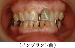 この方は御家族(脳梗塞)の介護を8年以上続けており、ご自分の身体は後回しといった状態で、初診時、糖尿病(血糖値200・毎日インシュリン注射)高血圧(降圧剤服用で140位)「奥歯のない部分には入れ歯は作ったけど取り外しが嫌で8年以上は入れずにいた」「その間、何本かの歯は自然に抜けていった」等、身体は完全にバランスを崩しており、骨質もスカスカでした。当院のインプラントの症例としては一般的なケースで、3ブロック7本のインプラントはオペ1時間程度・低侵襲で終了しました。8年以上歯がなくて前後左右高低と三次元的に狂っていた咬み合わせバランスを再構築し、かなり完成度の高い歯を提供出来たと思います。